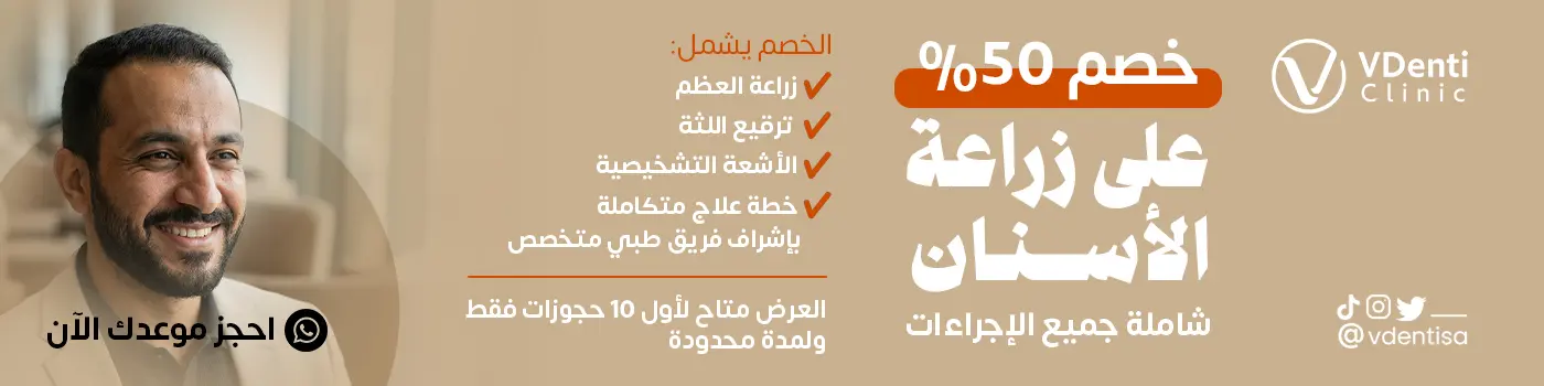 "ڤي دنتي" هي عيادة طبية سعودية رائدة في مجال طب الأسنان، مكونة من فريق من الخبراء المتخصصين الذين يسعون لتقديم أعلى مستويات الرعاية والجودة في علاج الأسنان، كأفضل عيادة أسنان في جدة. نقدم مجموعة واسعة من الخدمات الشاملة، بما في ذلك علاج جذور وأعصاب الأسنان، تقويم الأسنان، علاج اللثة، زراعة الأسنان، طب أسنان الأطفال، تبييض الأسنان بالقوالب المنزلية، وتنظيف الرواسب الجيرية وتلميع الأسنان، وتبييض الأسنان بالليزر. هدفنا هو الحفاظ على صحة فمك وابتسامتك الجميلة باستخدام أحدث التقنيات والطرق الحديثة، في بيئة مريحة وآمنة. نلتزم في "ڤي دنتي" بتقديم تجربة علاجية مميزة تلبي كافة احتياجاتك وتفوق توقعاتك، مما يجعلنا الخيار الأمثل كأفضل عيادة أسنان في جدة.